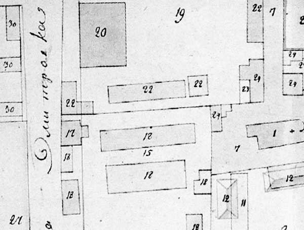 План взят нами из книги "История Москвы в документах XII-XVIII" веков [3], с.218, где он помещен под названием: "Чертеж земли, отведенной на Петровской улице под постройку театра. 1776 г." Это - подлинник XVIII века [3], с.218.