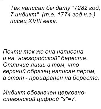 что дата на бересте записана совсем не церковно-славянскими цифрами, как
