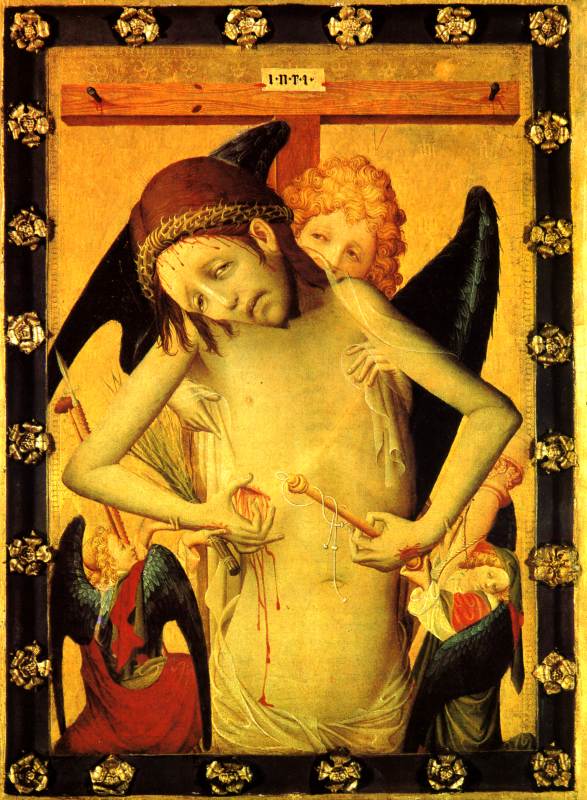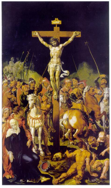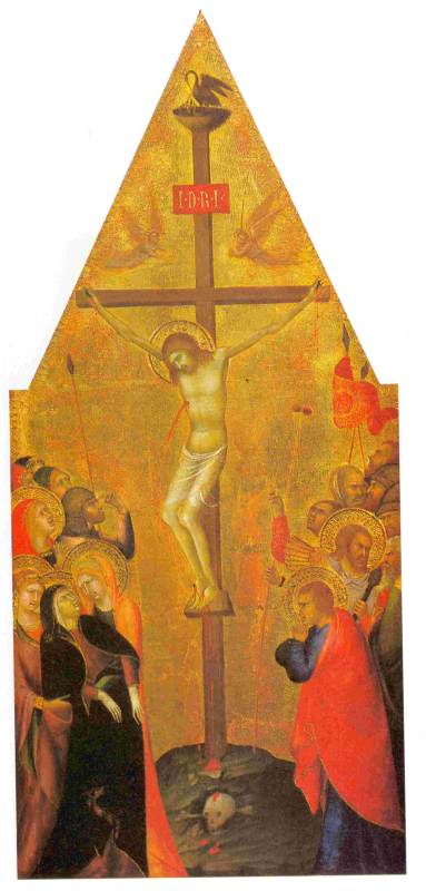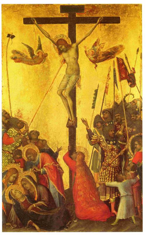 Совершенно аналогичный сюжет изображался и западно-европейскими средневековыми художниками, см. рис.2.60a, рис.2.64. Здесь рядом с крестом стоят АНГЕЛЫ и держат в руках орудия казни - копье и губку, занимая те же места, что и римские воины на других изображениях.
