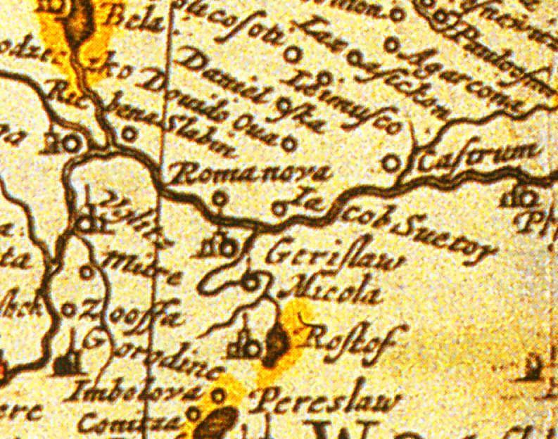 Между прочим, на рис.1.18 и рис.1.20, чуть ниже волжского Нового Рима, тоже на левом берегу, указан город с интересным названием "Святой Иаков" (Iacobi Suetoy). Тот же самый город Святого Иакова указан и на карте Фредерика де Вита, рис.1.24, но чуть дальше от Волги. Сегодня города с таким названием на Волге уже нет.