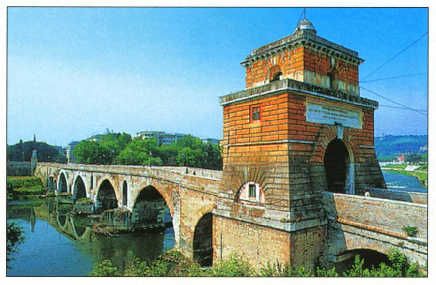 На рис.1.29 показана одна из картин, изображающих битву у Мильвийского моста в итальянском Риме. Воины, падают с моста в реку. Аналогичное изображение есть на горельефе Арки Константина в Рима. См. также Русский Лицевой Свод, рис.1.29a. Сегодня нам предлагают считать, будто летописный Мильвийский мост находится в итальянском Риме и даже показывают его многочисленным туристам, рис.1.30 и рис.1.31. Это ошибка. На самом деле битва императора Константина = Дмитрия Донского с его противником Максенцием = ханом Мамаем произошла совсем в других местах. На Руси, на территории будущей Москвы, где развернулось яростное Куликовское сражение, см. книгу "Новая хронология Руси". А мост в итальянском Риме назвали "Мильвийским" значительно позднее. Уже после того, как сюда - на бумаге! - перенесли события, происшедшие очень далеко от современной Италии. А именно, в ЛАТИНИИ = ЛЮДНОЙ стране. То есть в РУТЕНИИ = РАТНОЙ стране = Руси-Орде.