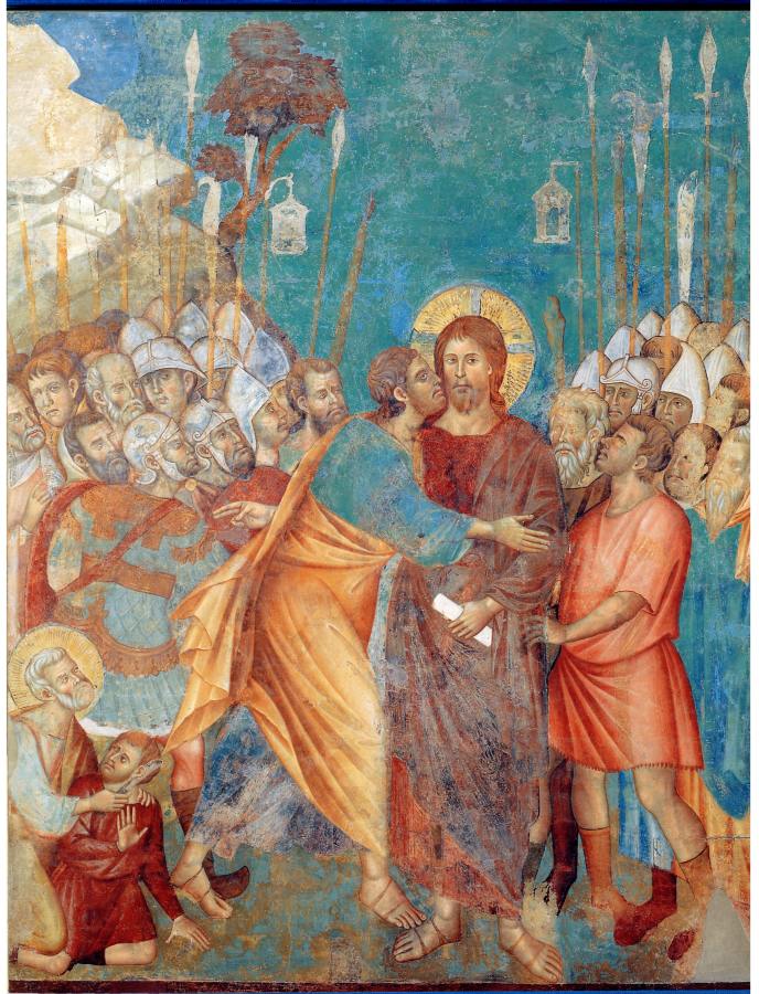 Рис.1.70. Арест Христа. Поцелуй Иуды. Фреска в Ассизи, церкви Сан Франческо. Якобы XIII век. Взято из [654:0], илл.66.