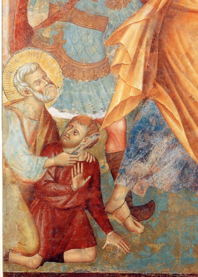 Рис.1.69. Апостол Петр пытается защитить Христа и отсекает мечом ухо одному из нападающих стражников. Фрагмент фрески в Ассизи, церкви Сан Франческо. Якобы около 1290-1300 годов. Взято из [654:0], илл.29.