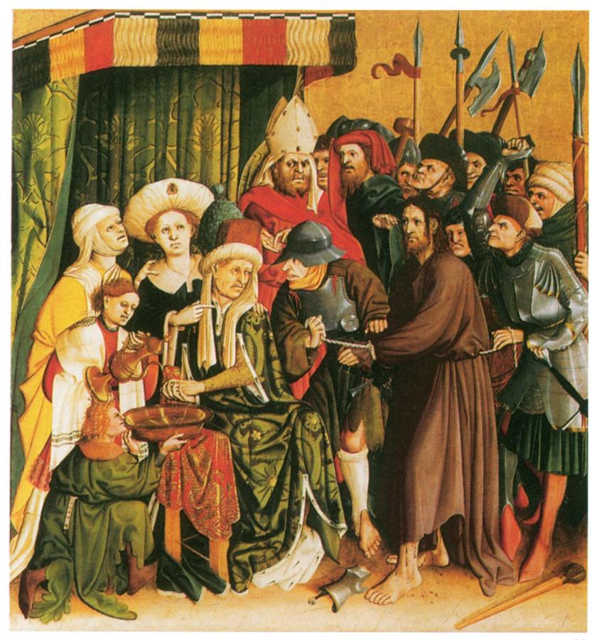 По Евангелиям, арестованного Христа сначала отводят к Пилату, а затем - к Ироду. Однако царь Ирод не решился брать на себя ответственность и, поиздевавшись над Христом, отослал его обратно к Пилату (Лука 23:1-13). Лука говорит: "И поднялось все множество их, и повели Его к Пилату.... Узнав, что Он из области Иродовой, послал (Пилат - Авт.) Его к Ироду... Но Ирод со своими воинами, уничижив Его и насмеявшись над Ним... отослал обратно к Пилату. И сделались в тот день Пилат и Ирод друзьями между собою, ибо прежде были во вражде друг с другом" (Лука 23:1, 23:7, 23:11-12).