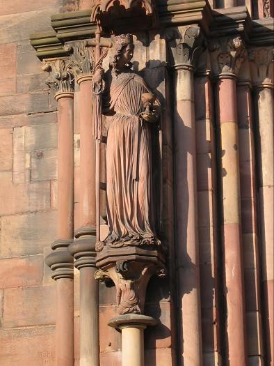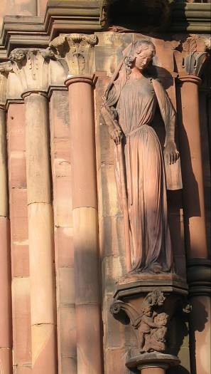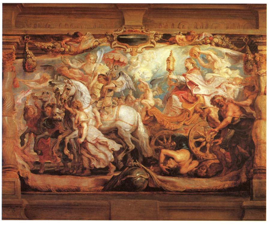 Наши исследования, изложенные в книге "Начало Ордынской Руси", показали, что Крестовые походы XIII века, то есть "античная" Троянская война были местью Руси-Орды и ее союзников за казнь Христа в Царь-Граде в 1185 году. Но тогда возникает естественный вопрос: кто такая римлянка Лукреция и греческая Елена Прекрасная, из-за которых вспыхнула столь яростная война-мщение? Согласно нашей реконструкции, в старых текстах речь первоначально шла о Деве Марии, матери Христа. Или же, более общо, о христианской религии или христианской Церкви, которую иногда отождествляли с женой, женщиной, см. книгу "Методы". На рис.2.70 приведена картина Рубенса "Триумф Церкви". ЦЕРКОВЬ ПРЕДСТАВЛЕНА КАК ЖЕНЩИНА, восседающая на колеснице. На рис.2.71, рис.2.72, рис.2.73, рис.2.74 приведены старинные скульптурные изображения христианской ЦЕРКВИ В ВИДЕ ЖЕНЩИНЫ. На рис.2.75 и рис.2.76 показана древняя немецкая скульптура, якобы XIII века, изображающая иудейскую СИНАГОГУ В ВИДЕ ЖЕНЩИНЫ. На рис.2.77 приведено еще одно старое изображение иудейской Синагоги в виде женщины. Причем, на рис.2.77a мы видим, что статуи Церкви и Синагоги на портале Страсбургского собора помещены по разные стороны от царя Соломона, то есть как бы отделены друг от друга.