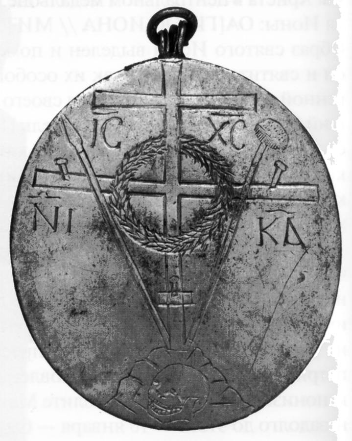 И еще одно наблюдение. Не исключено, что имя ПАНТИРА связано с именем АНДРОНИК, то есть с именем Христа. Напомним, что на страницах русских летописей Андроник-Христос, во время своего длительного пребывания на Руси, отразился как князь АНДРЕЙ Боголюбский. Кроме того, его именовали АНДРЕЕМ Первозванным, см. нашу книгу "Царь Славян". Кстати, имя АНДРОНИК могло получиться слиянием АНДРЕЙ+НИКА, то есть Андрей Победитель. Напомним, что рядом с распятием иногда писали слова: Иисус Христос НИКА, см., например, рис.2.89, рис.2.90, рис.2.91. Далее, не исключено также, что имя ПАНТИРА или ПАНДИРА (звуки Т и Д могли переходить друг в друга) произошло от П+АНДРЕЙ. Первая согласная П могла быть первой буквой славянских имен: Первозванный, или Победитель (по-гречески, Ника), или Боголюбский (переход Б-П). То есть имя П-АНДИРА могло означать П(ервозванный) АНДРЕЙ или П(обедитель) АНДРЕЙ.