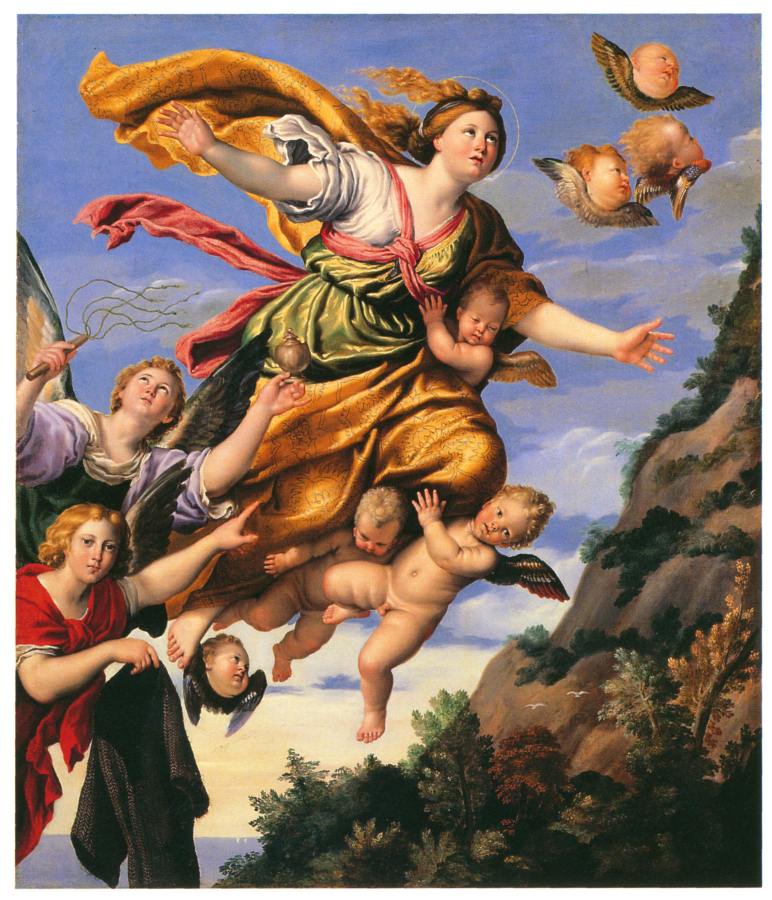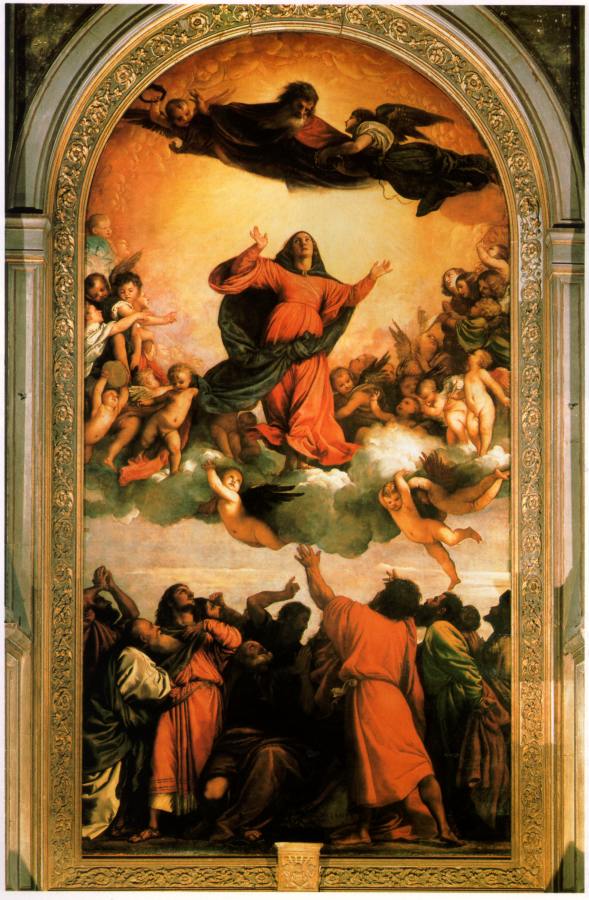 На рис.2.93 приведена известная картина Тициана "Вознесение Девы Марии (Ассунта)". Как мы начинаем понимать, "античные" авторы, в том числе Тит Ливий, рассматривали этот христианский сюжет как вознесение "римской Лукреции = Ларенции". Считается, что Тициан совместил здесь два мотива: Успения Марии и Непорочного зачатия. Пишут так: "Триумф Девы Марии и Непорочного зачатия показан здесь в форме вознесения на небеса к Богу Отцу... Эта первая общественная работа Тициана имела потрясающий успех" [122:2], с.249. О совмещении некоторыми авторами двух сюжетов - рождения Христа Марией Богородицей и Успения Марии Богоматери - мы будем подробнее говорить ниже. Напомним, что согласно некоторым западно-европейским изображениям Мария Магдалина тоже была взята на небо, рис.2.94.