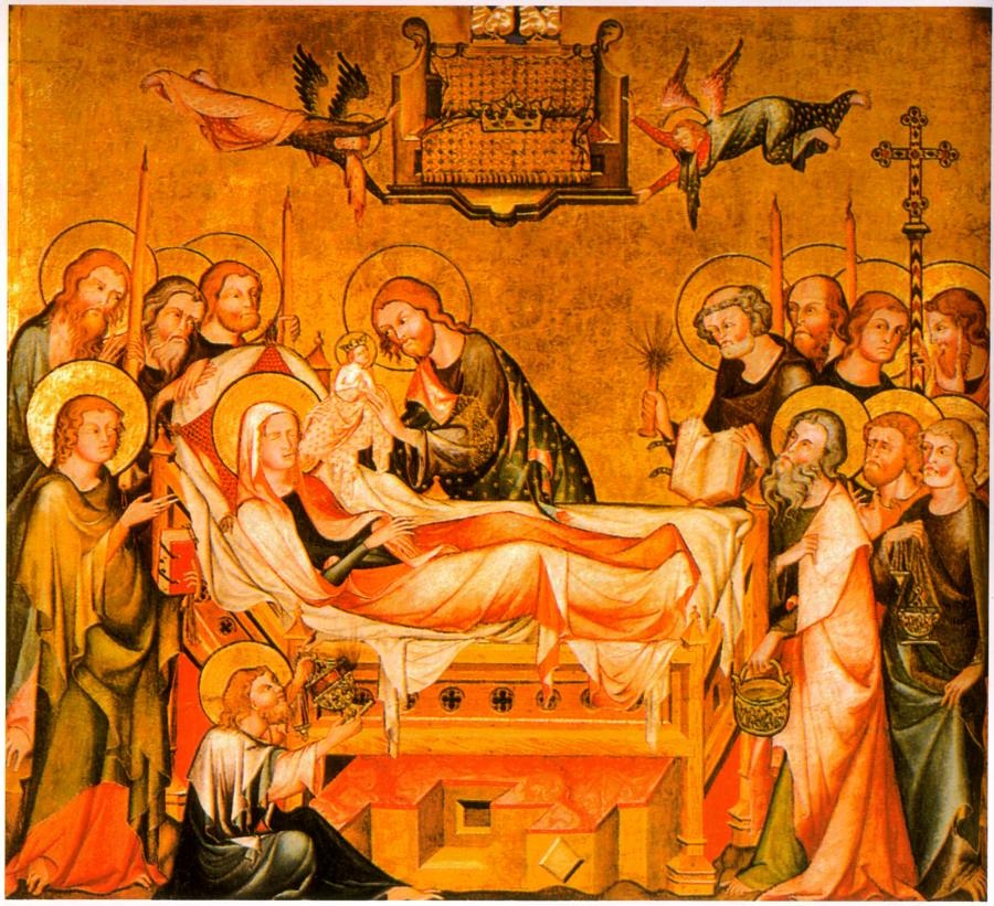 Еще раз подчеркнем, что мы опять сталкиваемся здесь с объединением, переплетением мотива Успения Марии и мотива Рождества Христова. Первоначально тут имелось в виду Успение Марии и Рождение Младенца Христа при тяжелых родах, опасных для матери.