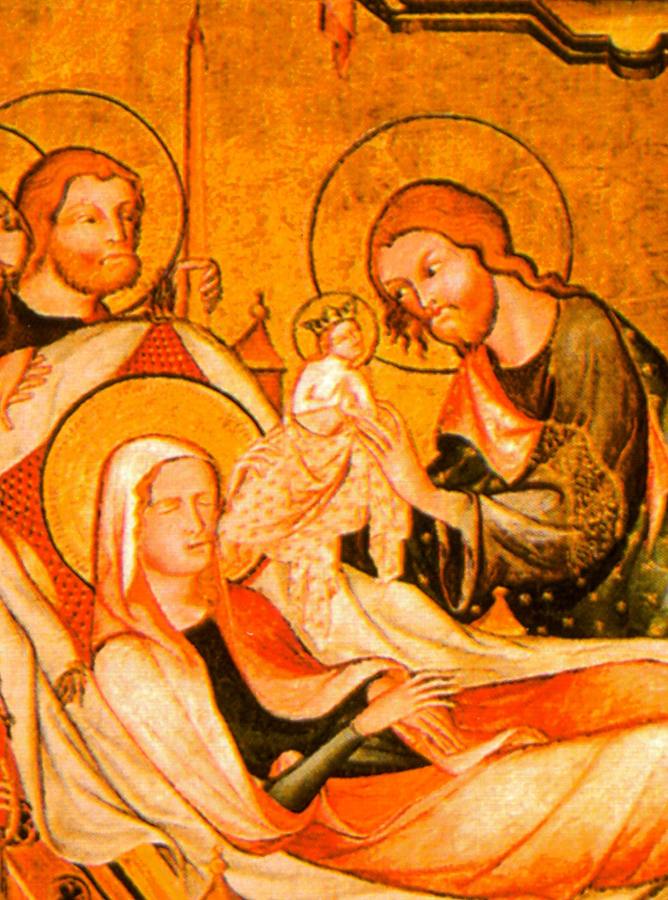Потом, когда суть дела стала забываться под давлением новых веяний в XVI-XVII веках, первоначальное название фрески, да и самого сюжета, слегка исказилось и стало звучать как "Чудесное нахождение (спасение) потерявшегося ребенка". Основные узлы подлинной истории рождения Христа кесаревым сечением здесь, конечно, остались: Мария, лежащая на постели в тяжелом состоянии, и чудесное спасение Младенца. Понятно, кстати, почему впоследствии стали иногда как бы совмещать Рождение Христа с Успением Марии. По той простой причине, что роды были тяжелыми и опасными. Дева Мария могла умереть, но не умерла. Хотя ее жизнь находилась под серьезной угрозой.