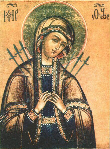 Надо сказать, что в русской церковной традиции цитированным словам Симеона о том, что оружие пронзит душу Марии Богородицы, всегда уделялось большое внимание. Они неоднократно комментировались и истолковывались. Ясно, что данный сюжет считался безусловно важным. Поскольку он, как мы показали, вероятно, связан с Рождеством Христовым, истоки столь пристального внимания к словам Симеона становятся более понятными.