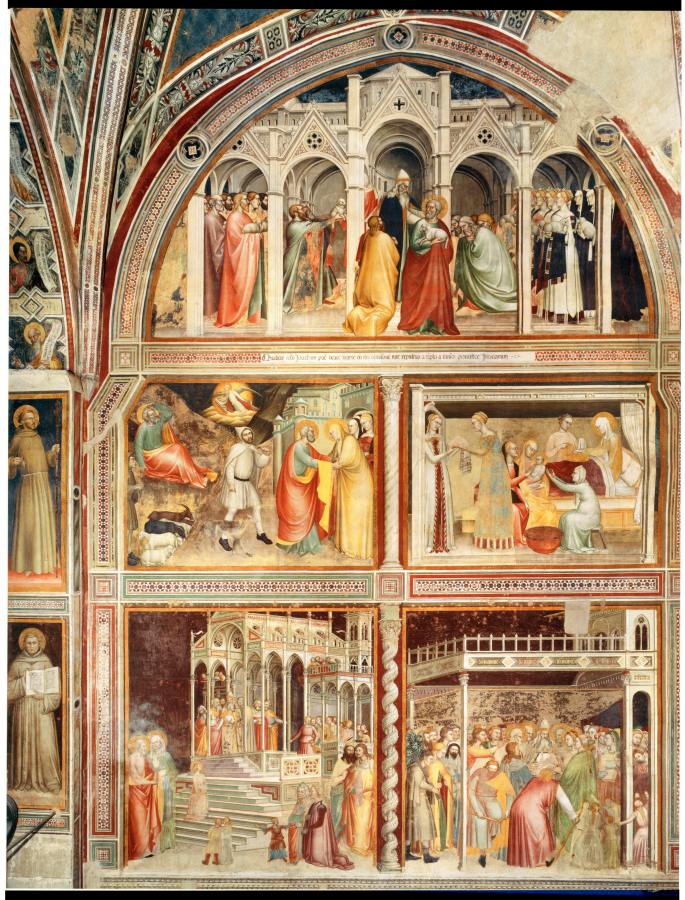 Могут возразить: но ведь фреска находится среди цикла изображений, посвященных, как нам сегодня говорят, Марии Магдалине. На это мы ответим так. По прошествии некоторого времени данный сюжет из истории МАРИИ Богородицы могли затуманить, намеренно или по ошибке, и перенести его на МАРИЮ Магдалину. Тем более, что в капелле Ринуччини, в одном и том же помещении, изображены истории обеих Марий - как Марии Богоматери, так и Марии Магдалины. Два цикла фресок были помещены рядом друг с другом. Могла возникнуть естественная путаница.