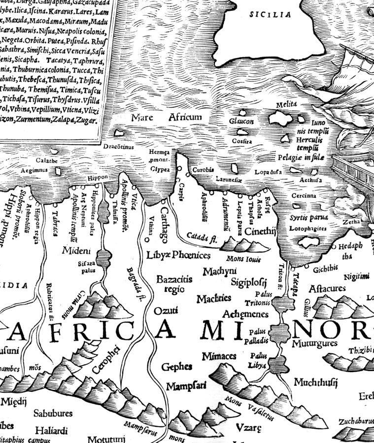 Историк Оскар Иегер сообщает: "Полагают, что поводом к основанию Карфагена на том УДИВИТЕЛЬНО БЛАГОПРИЯТНОМ МЕСТЕ, какое он занимал, послужил внутренний переворот в финикийском городе ТИРЕ. Некоторое число беглецов из Тира, предводительствуемых царственной женой ДИДОНОЙ, купило небольшой клочок земли (в низовьях РЕКИ Баград) у ливийского племени, владевшего северным берегом АФРИКИ, основало здесь поселение и дало ему весьма многозначительное в данном случае название КАРТ-ХАДАШТ - НОВЫЙ ГОРОД" [304:1], т.1, с.427.