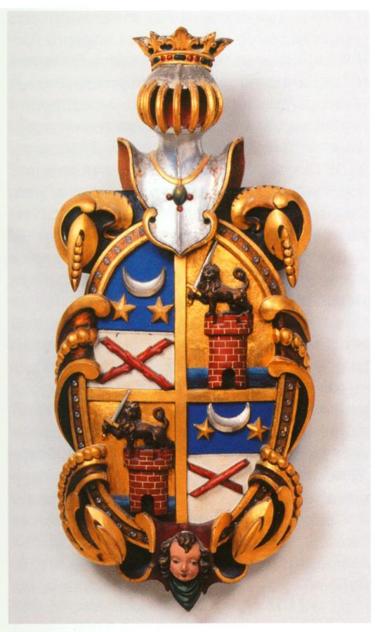 Между прочим, приведем на рис.9.13 герб известного шведского придворного и дипломата, графа Якоба Дельгарди. В первой половине XVII века он занимал важные государственные посты при дворе короля. Интересно, что на его гербе мы видим два османских=атаманских полумесяца со звездами. Так что в XVII веке связи прежней ордынской Швеции с метрополией Великой = "Монгольской" Империи были еще заметны.