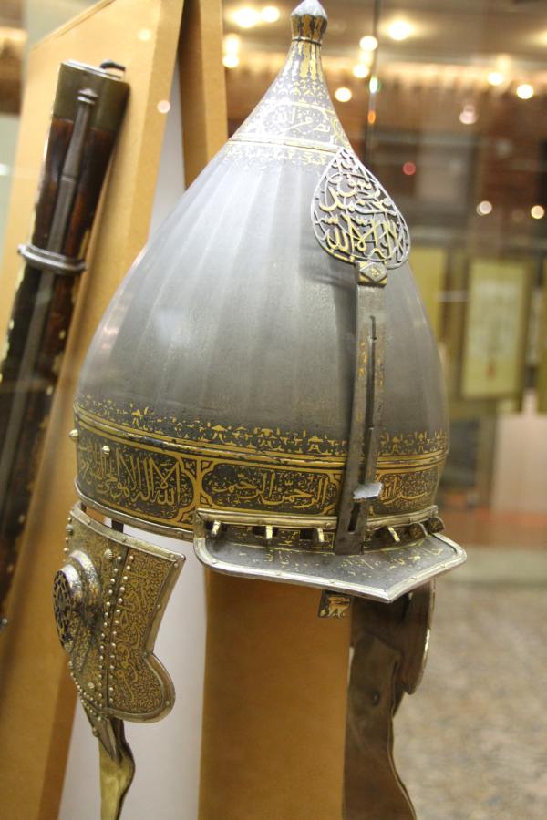 Известный русский воинский шлем, поднесенный в XVII веке царю Алексею Михайловичу князем Алексеем Михайловичем Львовым, называется "Шапкой Иерихонской", рис.9.15. Мы подробно обсуждаем этот интересный предмет и арабские надписи на нем, - точнее, считаемые сегодня арабскими, - в книге "Тайна русской истории", гл.1. Кстати, на Руси было известно несколько парадных шлемов московских царей, называвшихся "Иерихонскими".