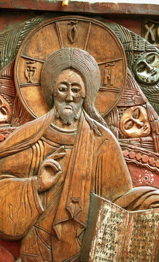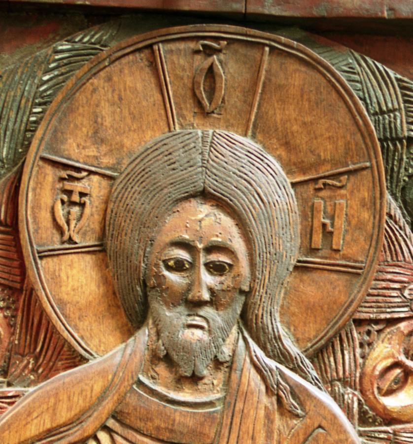 В книге "Крещение Руси" мы подробно говорили о том, что на старых русских, сербских и болгарских, иконах, изображающих Христа, на нимбе вокруг его головы рисовали крест и на нем писали три церковно-славянские буквы. На левом конце - буква "ОТ"; она писалась как буква Омега с буквой Т наверху. На верхнем конце креста рисовали букву "ОН" с титлой; ОН писалось в виде буквы О. А на правом конце - букву "ИЖЕ восьмеричное", соответствующую современному И, но писавшуюся как современное Н. На более поздних иконах эти буквы стали исчезать.