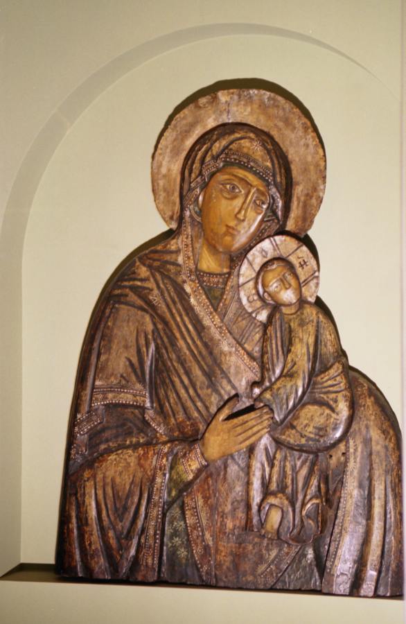 В Успенском соборе в приделе апостолов Петра и Павла над ракой митрополита Феогноста находился КАМЕННЫЙ БАРЕЛЬЕФ с изображением Георгия Победоносца на коне, поражающего копьем дракона; слева стоит дева в длинной одежде.