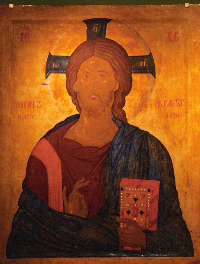 На рис.9.23 и рис.9.24 приведен еще один пример титлы над буквой ОН на нимбе Христа. Это - икона "Иисус Христос Пантократор" якобы 1400-1405 годов (Skopje, Macedonia).