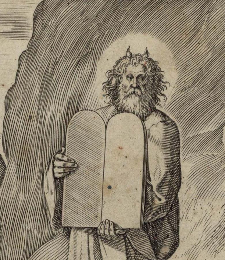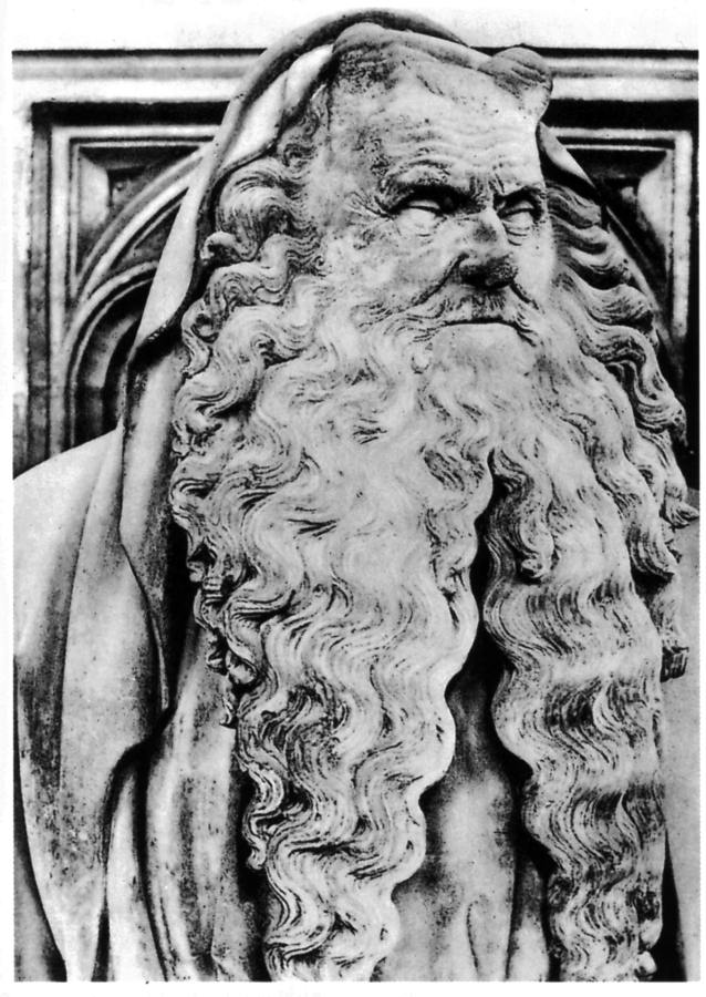 На рис.9.37 показана старинная скульптура пророка Моисея с "рогами" на голове (Франция, Дижон, монастырь Шанмоль). Мы уже неоднократно говорили, что "рога" - это по'зднее искаженное изображение османского=атаманского полумесяца.
