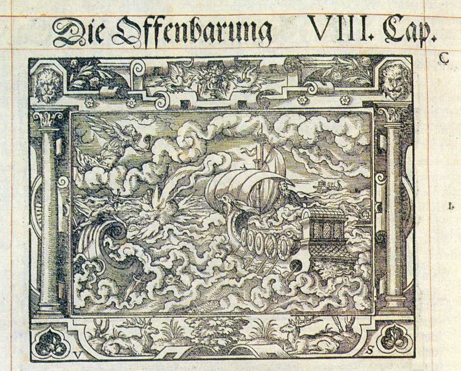 The Book of Revelation contains the following lines: “And the second angel sounded, and as it were a great mountain burning with fire was cast into the sea: and the third part of the sea became blood” (Rev 8:8). Also: “And a mighty angel took up a stone like a great millstone, and cast it into the sea” (Rev 18:21). Furthermore: “And the temple of God was opened in heaven, and there was seen in his temple the ark of his testament” (Rev 11:19).