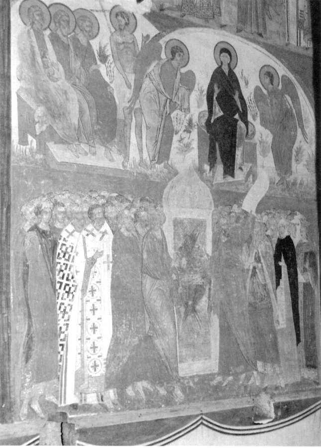 In brief, the Russians depicted the divine judgement in calm and solemn tones, without any elements of threat. The main accent was made on pictures of the righteous singing hosanna to the celestial throne. Visual representations of inferno were de-emphasised, and it was hardly regarded as a gruesome reality.