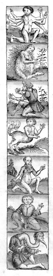 Fig. 5dp-01a. Denizens of the Horde (or Russia) as seen by the West Europeans. Engraving from the “Global Chronicle” of Hartmann Schedel (allegedly dating from 1493). All such artwork is based on real characteristics pertaining to the nations inhabiting Russia in the XIV-XVI century, which were misunderstood and greatly distorted by the Western European chroniclers. Taken from [1396:1], page XII. See more on the subject in CHRON5, Chapter 8:6.7.