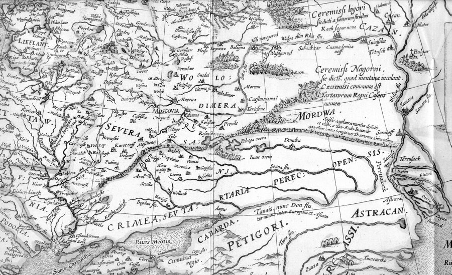Fig. 5dp-09b. Another close-in of Giacomo Gastaldi’s map, magnified further. We see the “Russian Sea”. Taken from [1459], Plate XXXVI, No. 121.