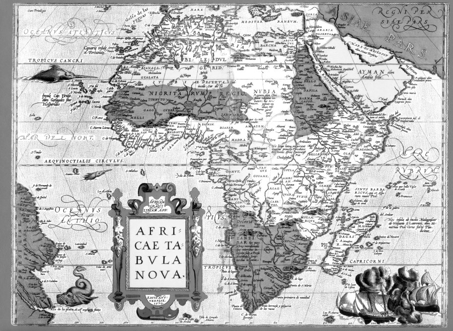 Fig. 5dp-06. Map of Africa from the atlas of Abraham Ortelius dating from the alleged years 1570-1612 A. D. It is remarkable that sea that separates Africa from Arabia, which we know as the Red Sea, is called “Mar Rosso” – could it stand for “Russian Sea”? There is also a city of Belugaras in the far South of Africa – a reference to the Bulgarians, perhaps? Abraham Ortelius: “Theatrum Orbis Terrarum”. Taken from [1261:1].
