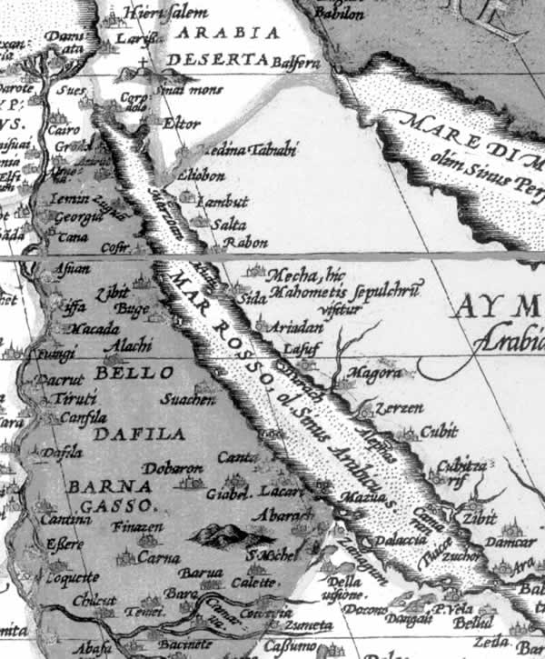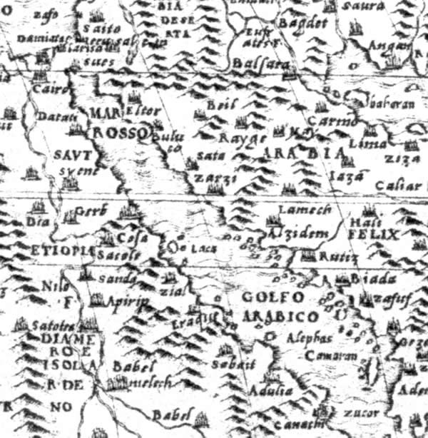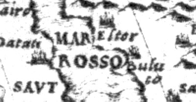 Fig. 5dp-10a. Close-in of a fragment of the Venetian map by Gianfrancesco Cammoccio allegedly dating from 1569. We see the Red Sea indicated as “Mare Rosso”. Taken from [1459], Plate XXXVII, No. 125.