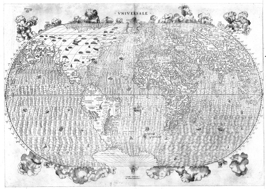 Fig. 5dp-10. A detailed world map by Gianfrancesco Cammoccio, Venice, the alleged year 1569. The modern Red Sea between Africa and Arabia is referred to as “Mare Rosso”, or “Russian Sea”. Taken from [1459], Plate XXXVII, No. 125.