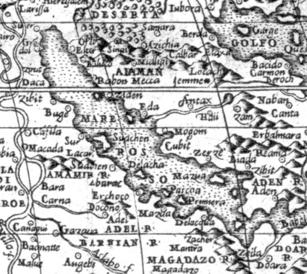 Fig. 5dp-10b. The same fragment of the map by Gianfrancesco Cammoccio with the Red Sea, or the “Russian Sea”, under greater magnification. Taken from [1459], Plate XXXVII, No. 125.