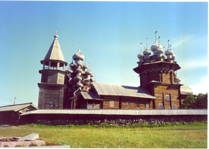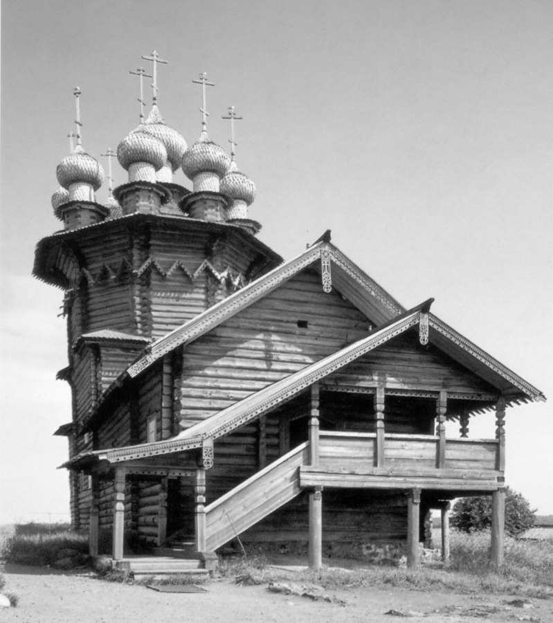 Fig. 5dp-29b. The Pokrov Church of 1764. Isle of Kizhi, Lake Onega. The entrance to the church is on the first floor, not the ground floor – this is a typical trait of the “ancient” Mongolian churches of Russia, or the Horde. It was only after the drastic reform of religious customs instigated by the Romanovs in the XVII century that the architecture of the Russian churches transformed into the “Greek style”, fallaciously declared ancient. Postcard from the collection by B. Savik and V. Parkkinen called “Kizhi. Open Air Museum”. See CHRON4, Chapter 14:47 for more details.