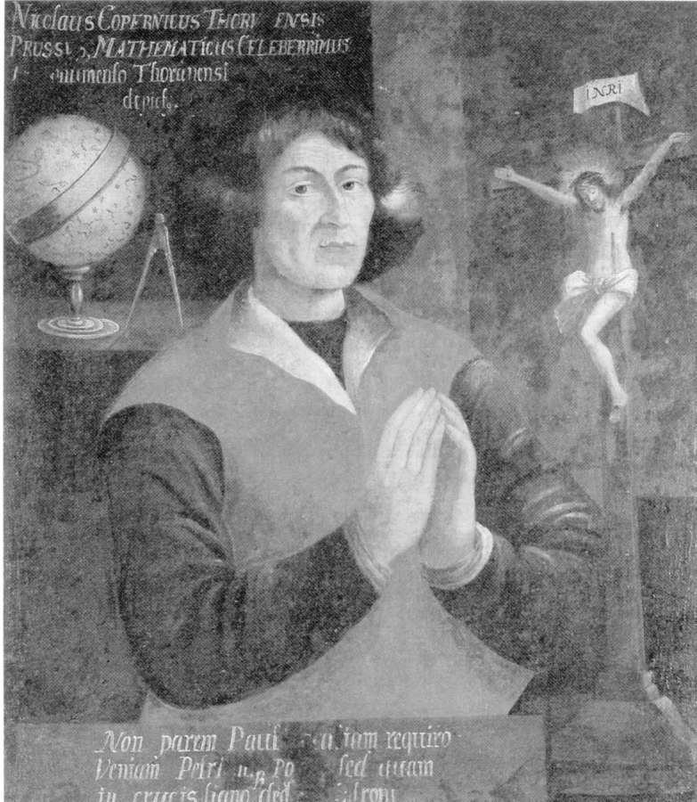 Fig. 5dp-32. Portrait of Nicholas Copernicus (who is presumed to have lived in 1473-1543) made by an anonymous artist in the alleged year 1600 (kept in the library of the Leipzig University). The portrait is ostensibly different from the other old portraits of Copernicus that we reproduced in CHRON3. The legend on the portrait begins as follows: “Nicolaus Copernicus Thorv ensis Prussi . . .”. Mark the term “Prussi” as applied to Copernicus. Taken from “The Parsimonious Universe. Shape and Form in the Natural World”. Springer-Verlag, New York, 1996 (page 59).