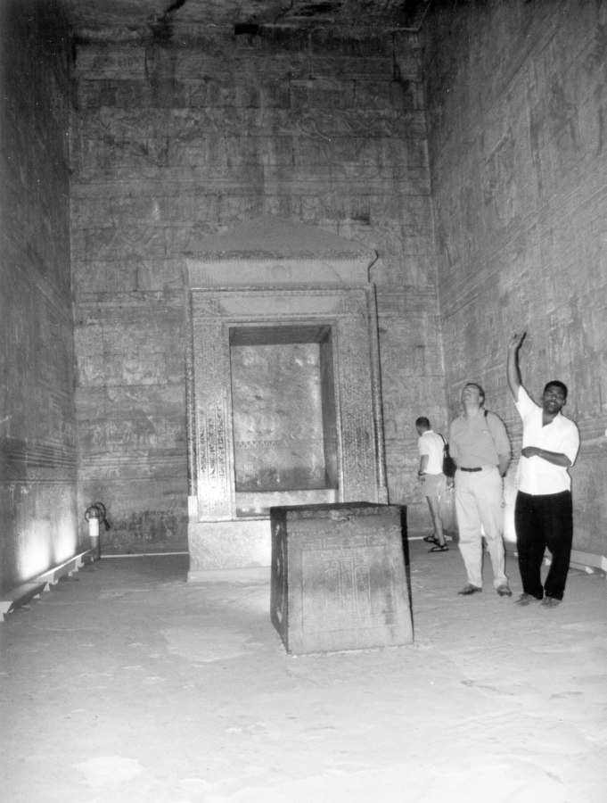 Fig. 5dp-34. Altar room of the “ancient” Egyptian Temple in Edfu. Its construction coincides with that of the Christian altar rooms, complete with the so-called “royal gates” and the location of the altar. On the left and the right of the “royal gates” there are two doors leading to side-chapels. Therefore, the sanctum sanctorum of the Egyptian temple was a spitting image of the altar-rooms of Christian churches. Photograph taken in July 2002.