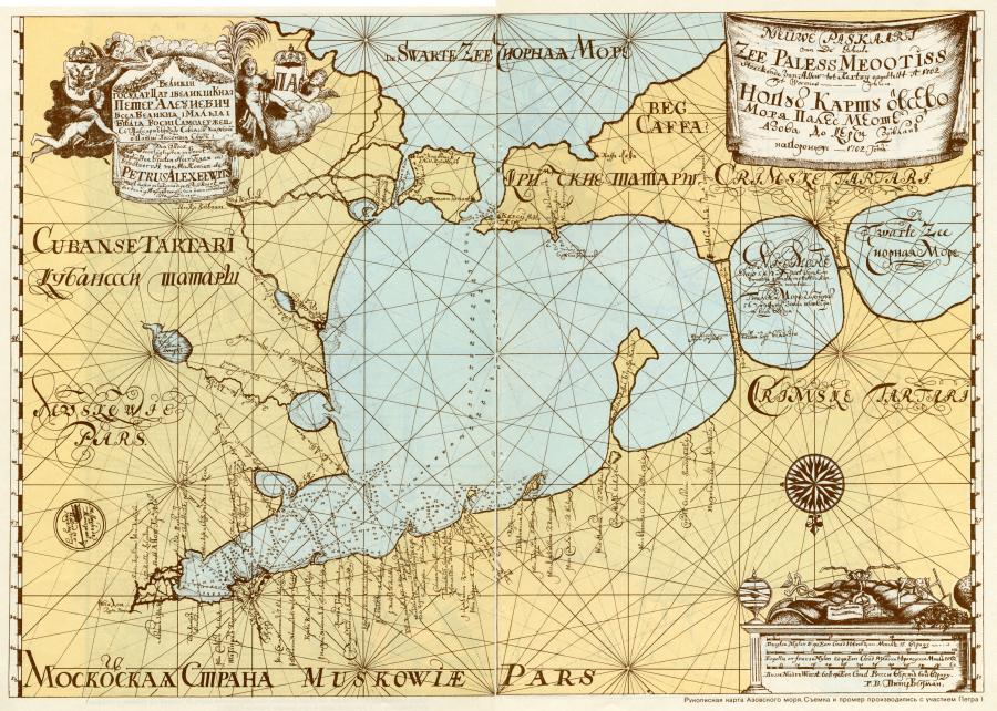 We shall turn to the drawn map of the Azov Sea compiled in 1702. “Observations and measurements performed with the participation of Peter the Great” ([73]). See fig. 1.1.