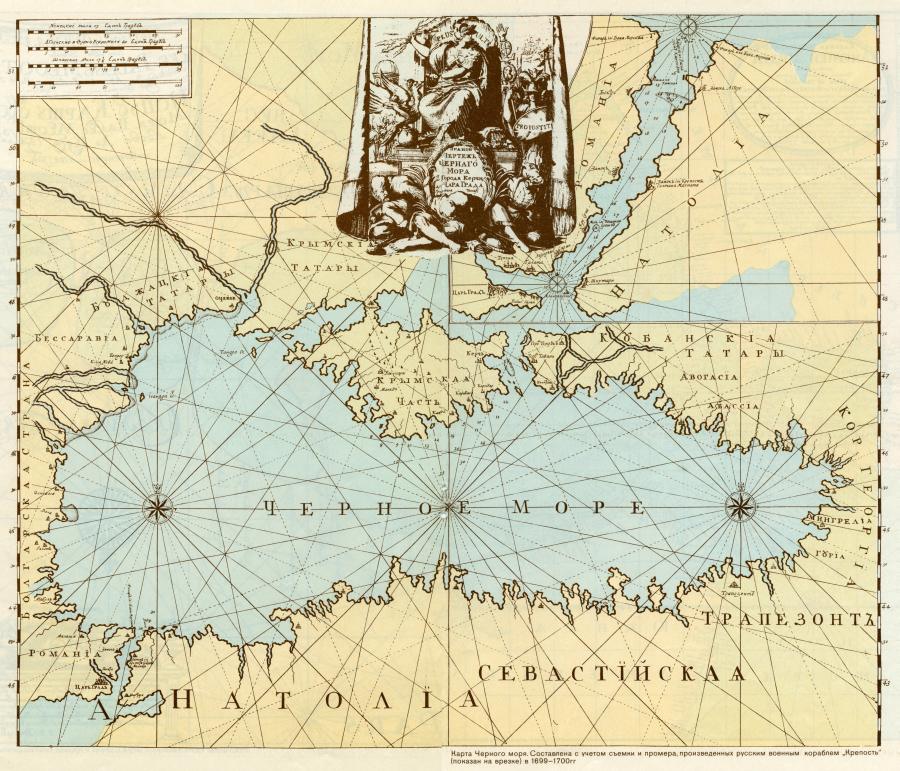 LeLet us turn to a Russian military map of the Black Sea that was compiled somewhat earlier, in 1699-1700 (see fig. 1.4). Upon it we see the name “Kuban Tartars” yet again (fig. 1.5). We see that the Kuban Cossacks were still referred to as “Tartars” around the end of the XVII century. We also see the Budjak Tartars next to Basarabia. The Crimean Tartars are naturally present as well. Turkey is referred to as Anatolia, whereas the former Byzantium is called Romania.