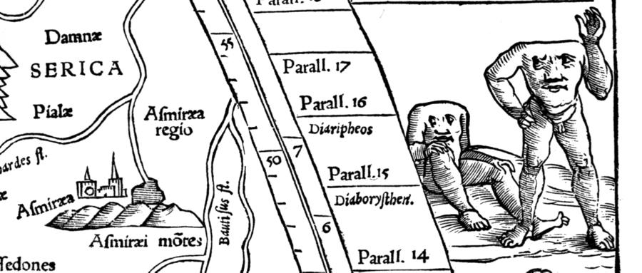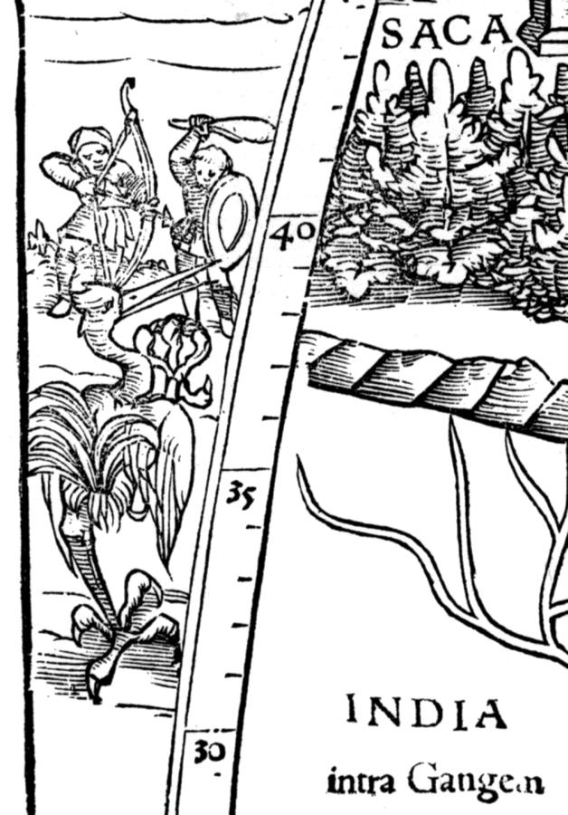 According to J. K. Wright, “first and foremost, India was a wonderland, inhabited by pygmies who battled against cranes and giants who fought griffins [we are citing a fragment of a map compiled by the “ancient” Ptolemy, allegedly published in 1540 – see fig. 8.14 – Auth.].