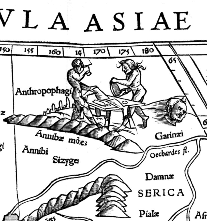 We shall conclude with another map fragment taken from the “ancient” Ptolemy’s Geography, first published in an edition of S. Munster allegedly dating from 1540 (see fig. 8.19). The everyday life of the Scythian cannibals is represented most explicitly indeed – the Tartars, or Scythians, are busy cooking a rather unsophisticated meal, carving the corpse of either an enemy or a compatriot. This is how the West Europeans started to portray the ancestors of the modern Russians around the epoch of the Reformation and later; alternatively, this might be a distorted perception of some misunderstood custom.