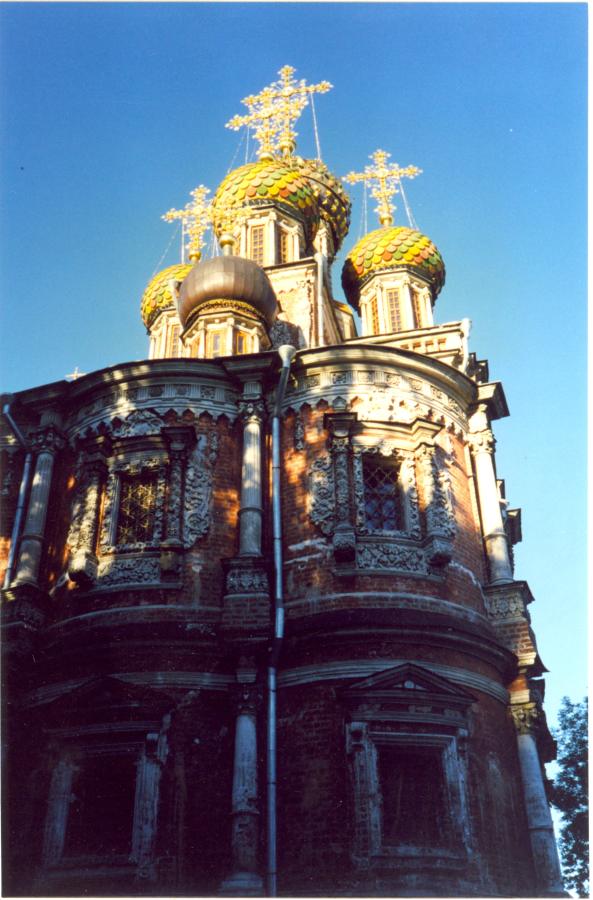 Let us remind the reader of the unique architectural features of the Cathedral of St. Basil. It looks as though it were collated of several independent churches, each of which with a distinct dome of its very own. Above them we see the tall dome of the central church that they appear to huddle around. The shape of certain domes very closely resembles a turban, the old headdress of the Cossacks still preserved in the Muslim world (see figs. 12.12 and 12.13).
