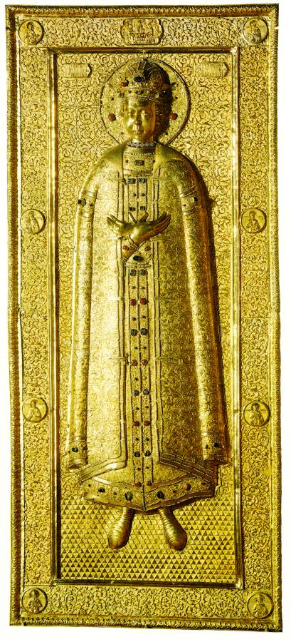 The only mention of a golden coffin that we have managed to find was in re the golden Holy Sepulchre in Moscow crafted at the end of the XVI century at the orders of Czar Boris “Godunov”. The coffin was wrought of cast gold ([305], page 158). 4 angels and 12 statues of apostles were also cast of pure gold, which nobody clearly intended to treat frugally.