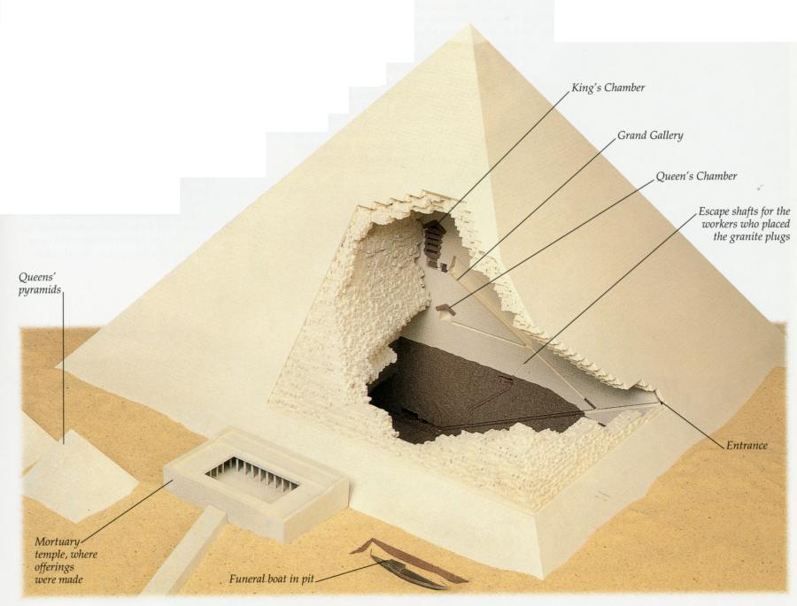 The pyramid of Cheops (or the Great Pyramid of Khufu) is the largest (see figs. 19.1 and 19.2). It is said to have been erected after the Great Sphinx ([99]). It is however remarked that virtually no information exists about these three pharaohs; what we have is of legendary nature.
