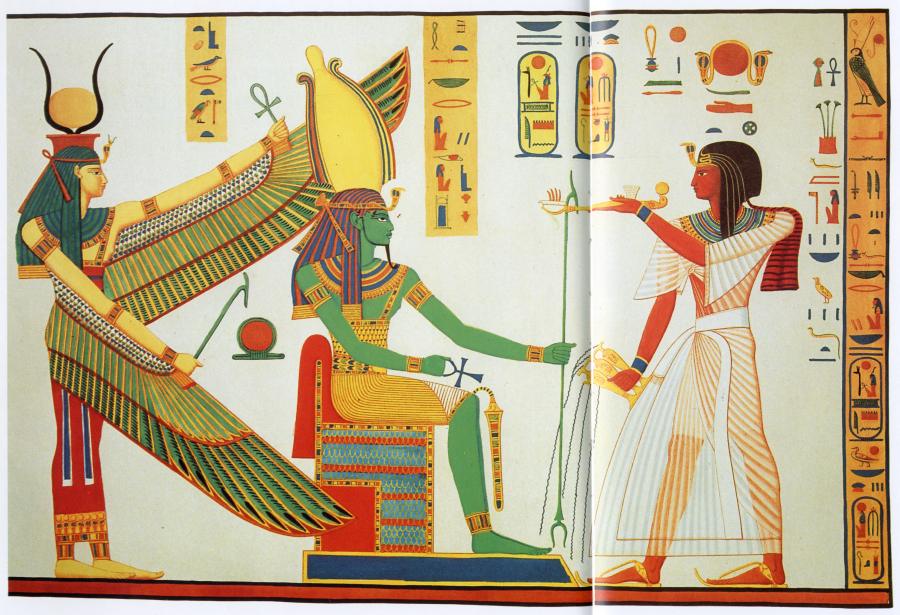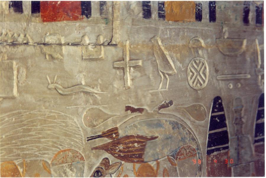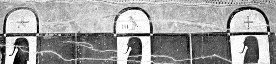 In fig. 19.38 we see a fragment of a mural from the Egyptian tomb of the "ancient" Pharaoh Ramses III. The Pharaoh is holding a Christian cross in his hand; the goddess behind his back has her hand stretched out in the typically Christian blessing gesture ([1415], pages 118-119). The goddess has an Ottoman crescent on her head.