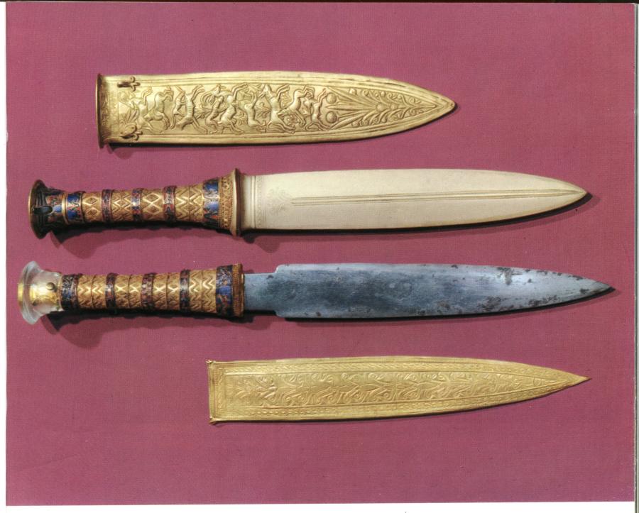 Nevertheless, some of the objects that Carter "found" in the crypt (currently in the possession of the Cairo Museum) make the impression of authenticity. Therefore it is possible that there are actual findings in the "Tutankhamen collection". Both of the pharaoh's daggers, manufactured with the use of the ancient granulation technique, appear to fall into this category. The knives were found in the fabric that covered the pharaoh's mummy, which means that the latter is very likely to be authentic as well.
