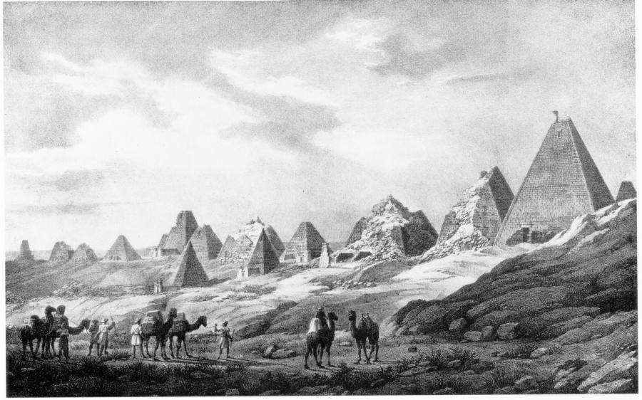 Many golden items were found in the pyramids of Meroe. They were described in the book entitled "Gold of Meroe", for instance ([1350]). It has to be noted that the vast field of Meroe is but a small part of the Egyptian territories occupied by funereal constructions.
