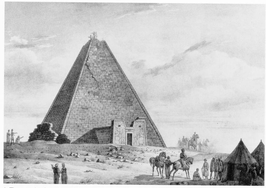 In fig. 19.32 we see the pyramid field upon the northern cemetery of Meroe located in the region of Middle Nile. This is how these places looked in 1821 ([1350], page 7). Fig. 19.22 depicts the pyramid ascribed to the "ancient" Queen Amanishakheto the way it was in 1821 ([1350], page 9). One must pay close attention to the fact that similar pyramids were built in America. In fig. 19.34 we see the mediaeval pyramid known as "The Temple of the Jaguar", which is located in Guatemala ([1270], page 83). It is very similar to the "ancient" Egyptian pyramid, or burial mound, qv in fig. 19.33.