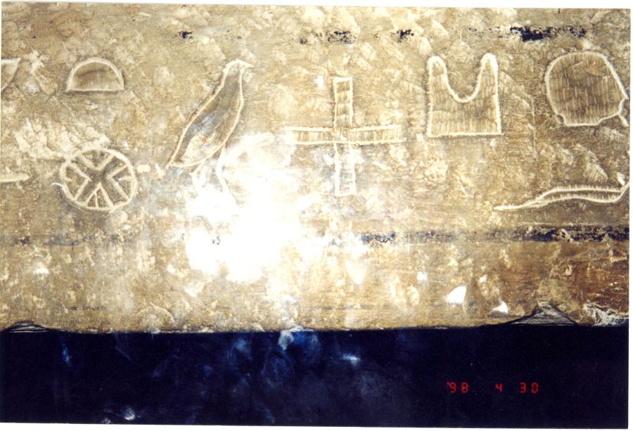 In figs. 19.41 and 19.42 we reproduce two photographs taken in the Egyptian Museum of Cairo in 1999. They were kindly provided by G. A. Khroustalyov, as well as many other interesting materials on Egyptian history that he had discovered. What do we see in the photographs? Typical Christian crosses. Also mark the crosses circumscribed by a circle, which symbolises a halo. They are sometimes called "Qatar crosses". Such crosses were very common in mediaeval Europe (France and Spain in particular, qv in CHRON6, Chapter 9:7).