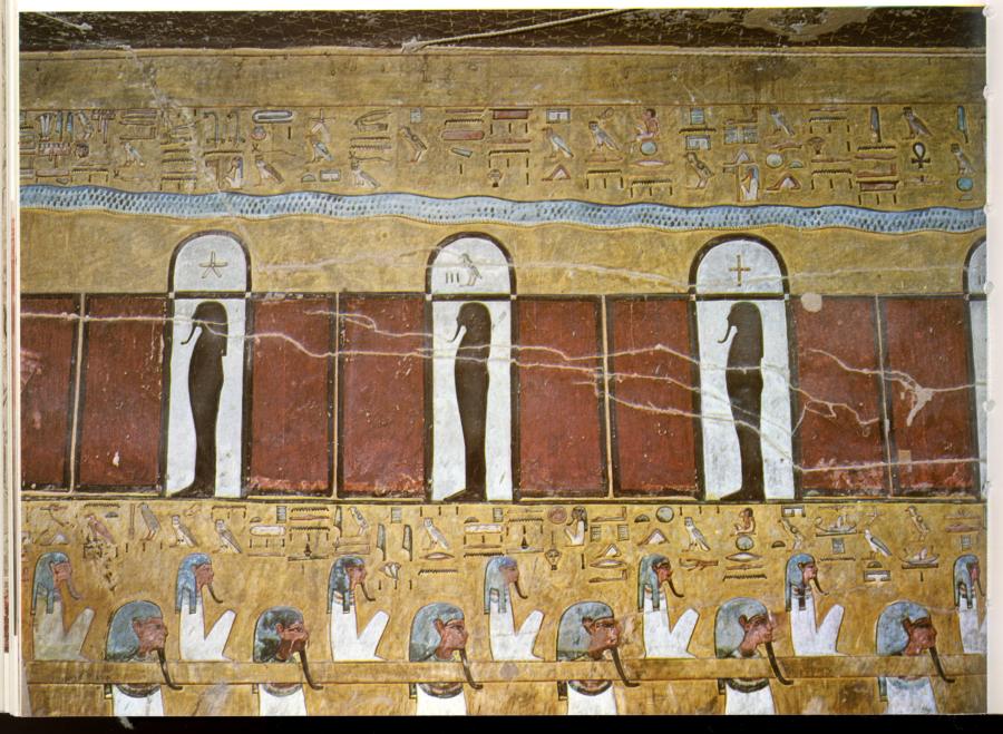 In case of Tutankhamen's tomb the artwork is a rectangle that covers a whole wall and also parts of the two adjacent walls, with a clearly defined boundary, since it does not cover the whole space available. This rectangle appears right in front of the tourist who walks into the tomb. Areas that aren't quite as accessible to the tourists remain void of artwork for some reason. One gets the impression that it was designed as a tourist attraction - we see nothing of the kind in any other tomb known to us. Moreover, all the burial chambers in the Valley of the Kings have a domed ceiling, usually adorned with a zodiac. This isn't the case with Tutankhamen's tomb - the chamber is perfectly rectangular, which doesn't prove anything per se; yet the numerous other tombs make it look rather odd.