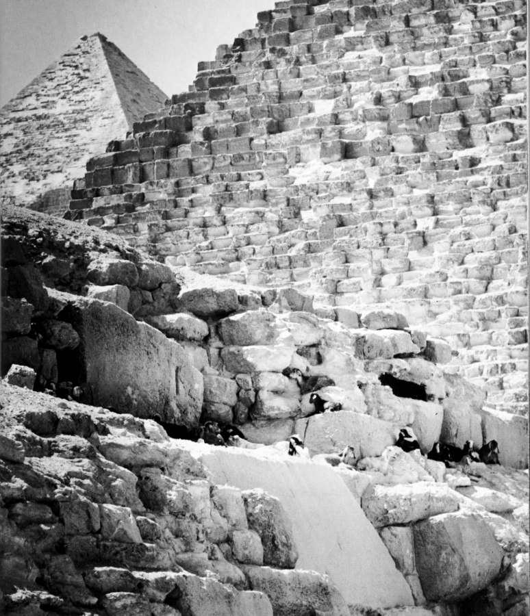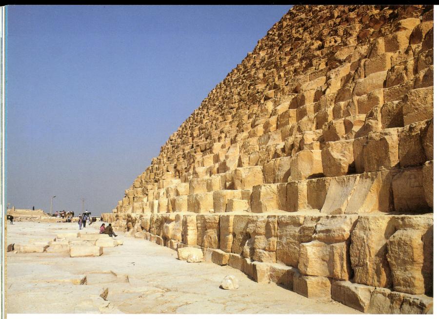 As for the quarries on the other bank of the Nile that exist until this day, as well as the descriptions of how the rock was transported towards the pyramids ([464], page 189), they only relate to the stone jacketing, which had once covered the entire surface of the Cheops Pyramid. Some remains of the granite and limestone jacketing have survived until this very day - for instance, near the top of the Khefren Pyramid.