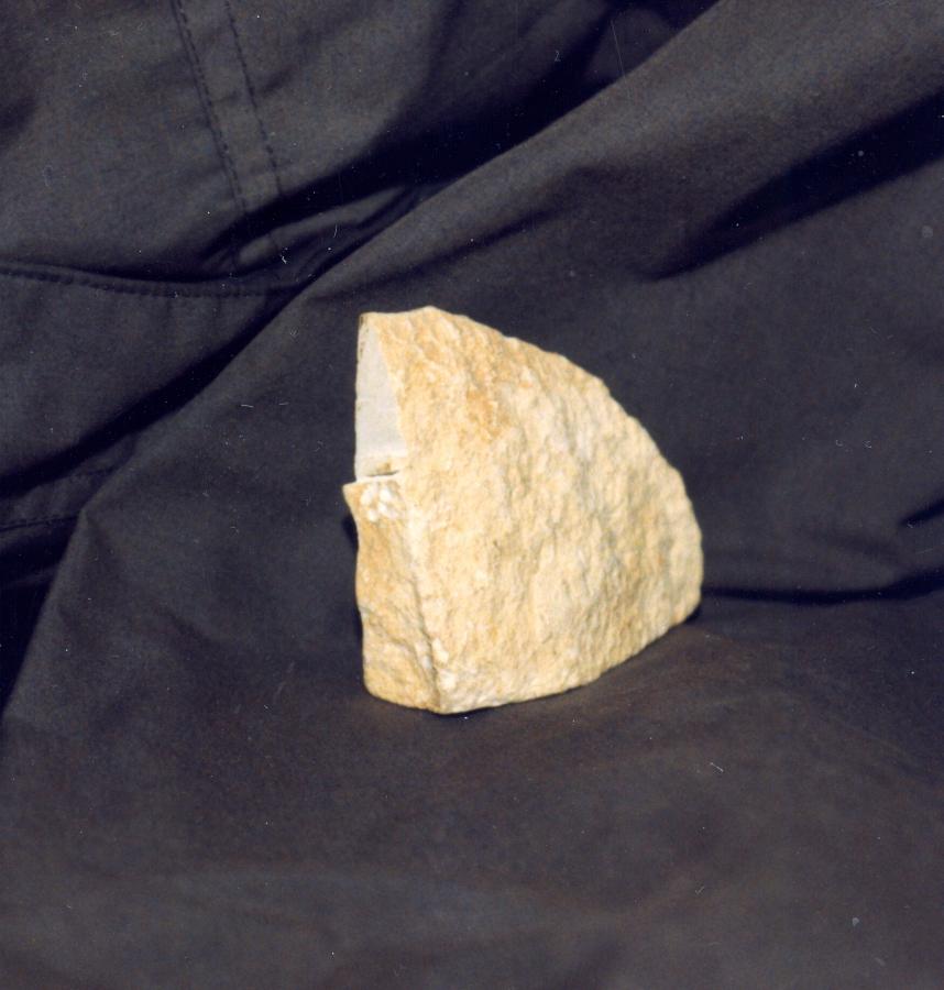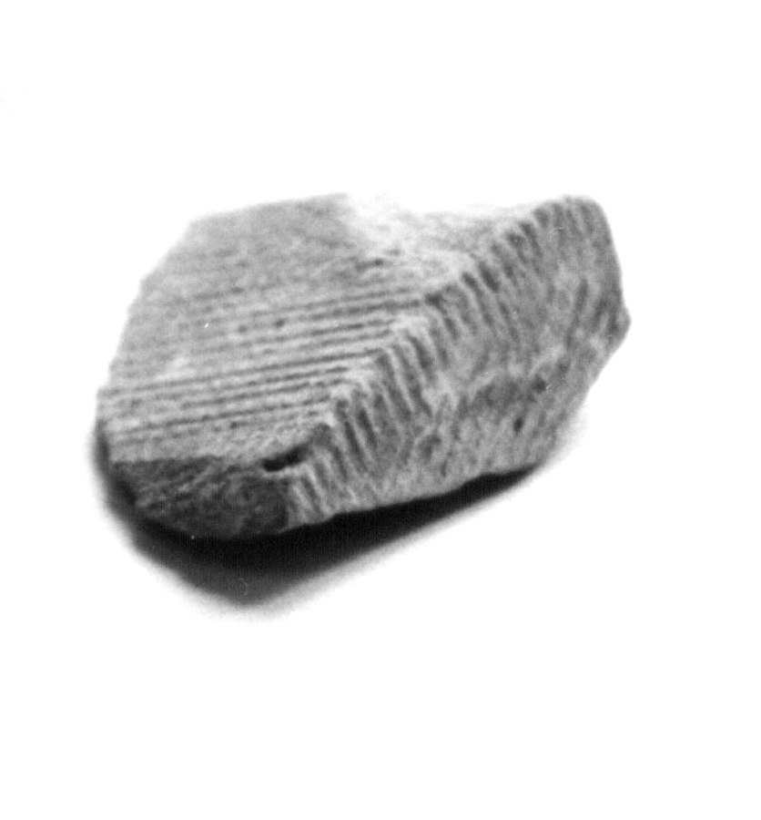 The top surface of the block is very uneven, qv in figs. 19.63 and 19.64. A part of the fragment's top surface was sawed off for chemical analysis. The rest has retained the original knobbly shape. This is just how the surface of a concrete block looks when it solidifies; nowadays special vibrators are used in order to smoothen the hardening concrete surface. The Egyptians of the XIV-XVII century obviously didn't have any such machinery, hence the uneven surface of the blocks. We are referring to the top side of a block - the rest of them are even, but bear the marks of the matting. In case of a carved block, all sides would look the same.