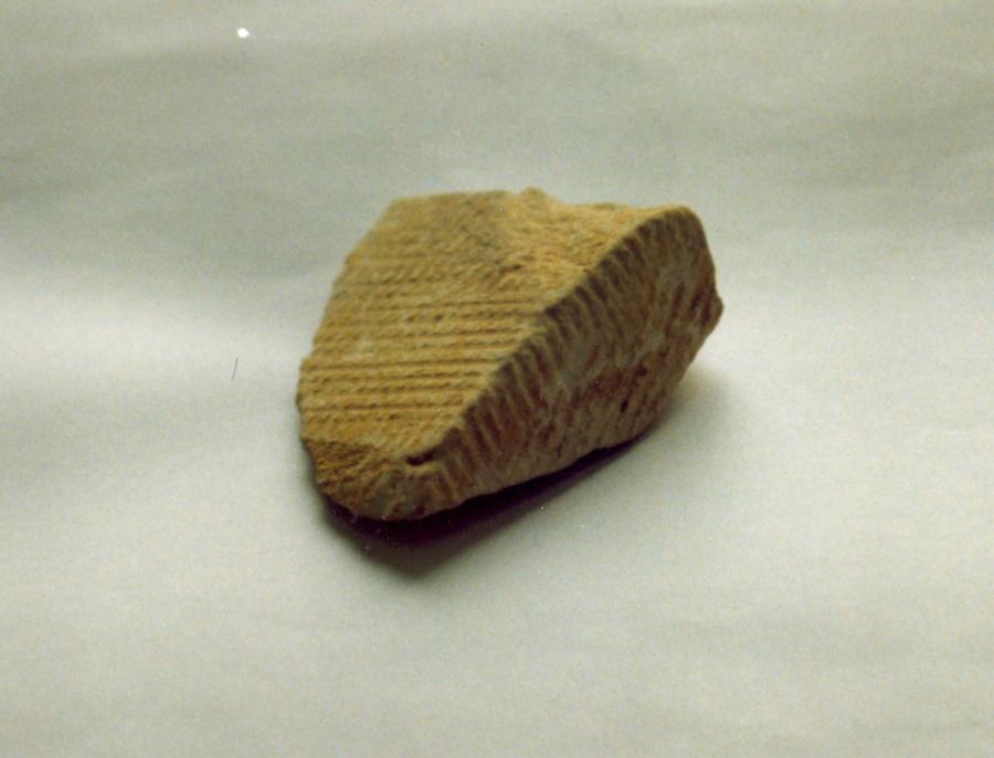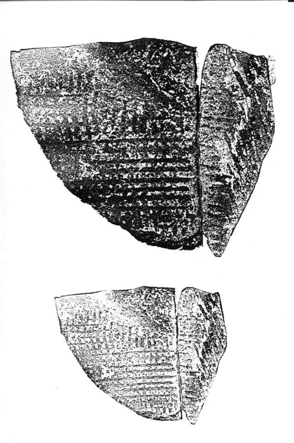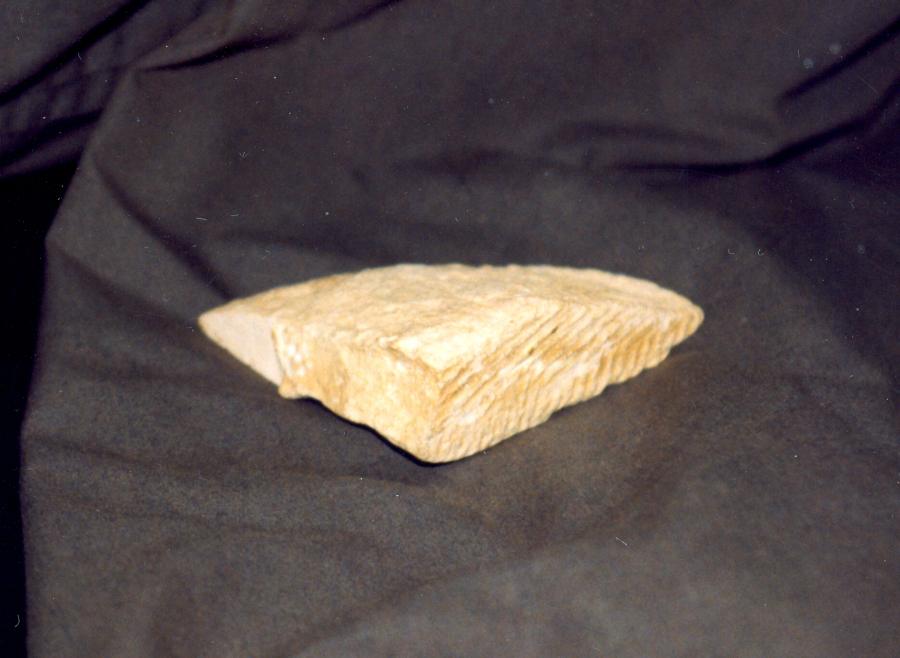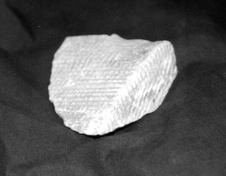 According to the report of our eyewitness, who has chipped a piece off one of the Cheops Pyramid's blocks (he needed to purchase a special licence for this purpose), such matting marks can be seen on every block comprising the section of the pyramid that the fragment comes from. Let us emphasise that the section in question is situated at the height of 50 metres, and pertains to the side of the pyramid that opposes the exit. No tourist groups are usually taken there; the average tourist can only see the bottom rows of masonry from ground level, where one sees no matting marks. They could have been chiselled off deliberately, but not necessarily so - the sandstorms so frequent in these parts carry fine sand that polishes the bottom blocks, which are rather soft - like plaster or a human fingernail. Therefore, sandstorms could have polished the surface of the blocks at the bottom completely, destroying the matting marks from the casing. However, the wind doesn't carry any sand at the height of fifty metres above ground level, and the blocks from that part of the pyramid have retained such marks as a result.