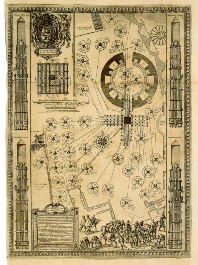 Concrete manufacture is a simple enough process, which means that concrete became a common construction material as soon as it was invented. One must point out the advantages of the "concrete technology" as compared to the construction of buildings from natural blocks of cut rock. The process of carving large blocks of monolithic stone involves enormous complications, since it is difficult enough to transport them across the distance of several kilometres, let alone several dozen kilometres. Of course, such blocks were occasionally used - for instance, the famous Egyptian obelisks found in a number of European cities apart from Egypt could be carved of monolithic rock. There are old documents and drawings in existence that describe the manufacture of certain obelisks, as well as their transportation and installation. However, every such operation would naturally involve a great effort, which is why the manufacture of solid stone obelisks never caught on too widely. In fig. 19.57 we reproduce an ancient drawing that depicts the installation of the Vatican Obelisk in the alleged year 1586 - it is said to have been brought to Italy from Egypt in Africa. We can clearly see that the builders had to invest much effort into installing the obelisk vertically - an extensive system of mechanisms and cables was deployed for this purpose. However, this may also be an invention of more recent artists.